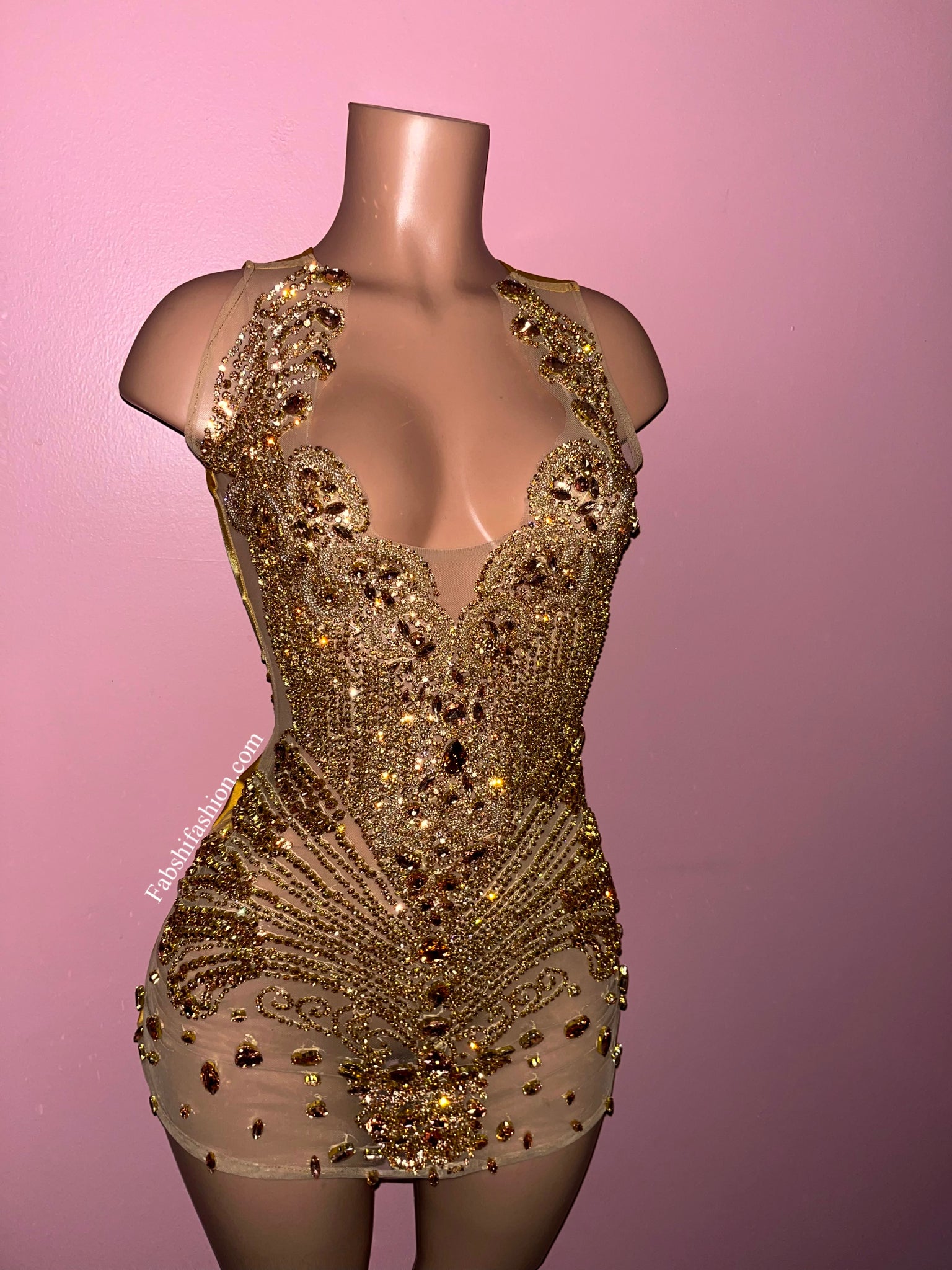 Fabric Type: The Front of the dress is a beautiful beaded lace applique. This dress has a 2 way stretch.
